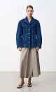Denim jacket with raised seams. The model has a loose silhouette with dropped shoulders and a fastening with metal buttons.