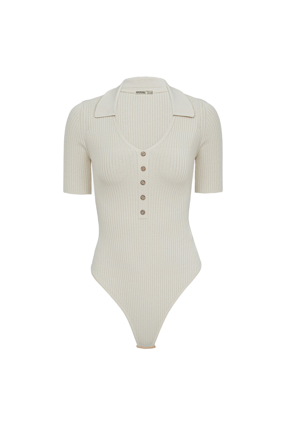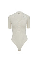 Viscose bodysuit with short sleeves, V-neck and polo collar.