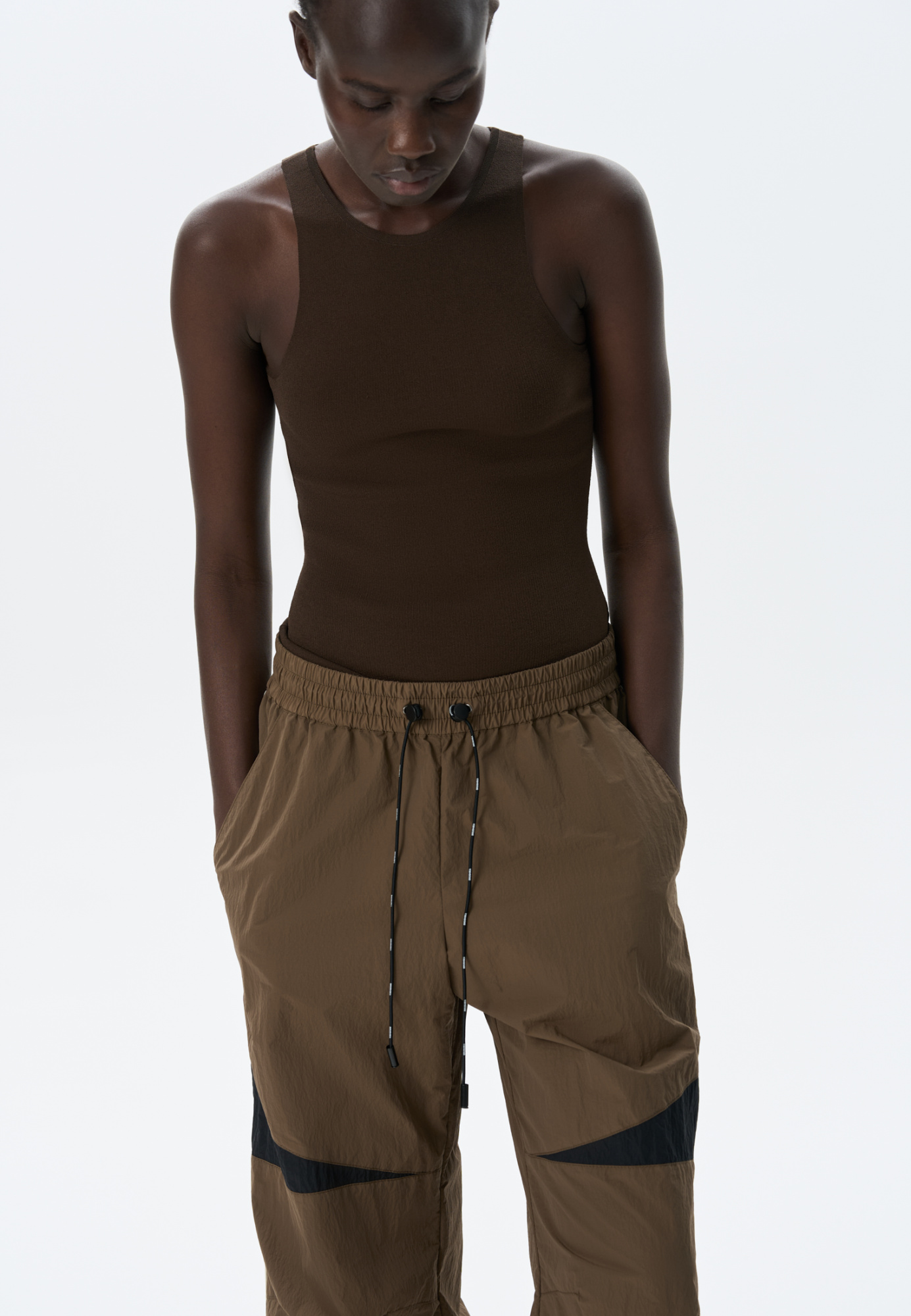 Sleeveless knit viscose bodysuit. Pairs perfectly with a faux leather skirt.