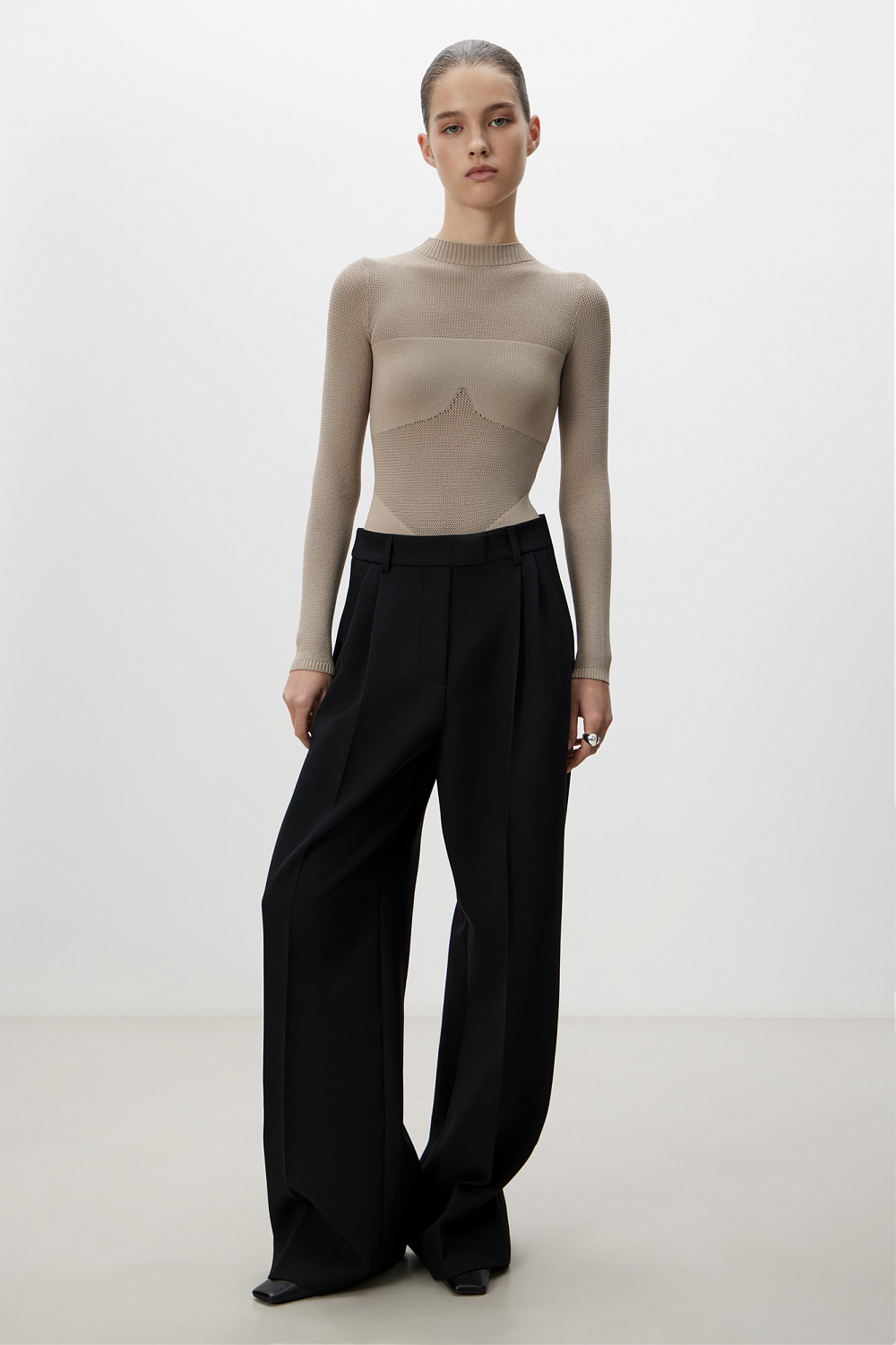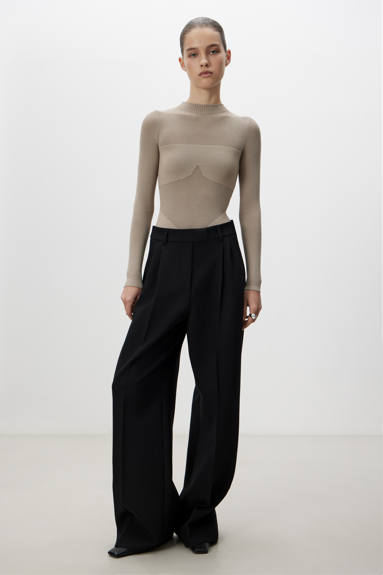 Viscose bodysuit with mesh inserts.
