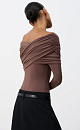 Bodysuit made of soft and silky fabric with draped bodice. Fitted silhouette, long sleeves.
