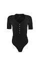 Viscose bodysuit with short sleeves, V-neck and polo collar.