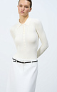 Knitted polyviscose bodysuit with polo collar and button closure.