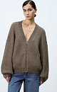 Knitted bomber jacket with side pockets. Loose silhouette model with dropped shoulders and zip fastening.