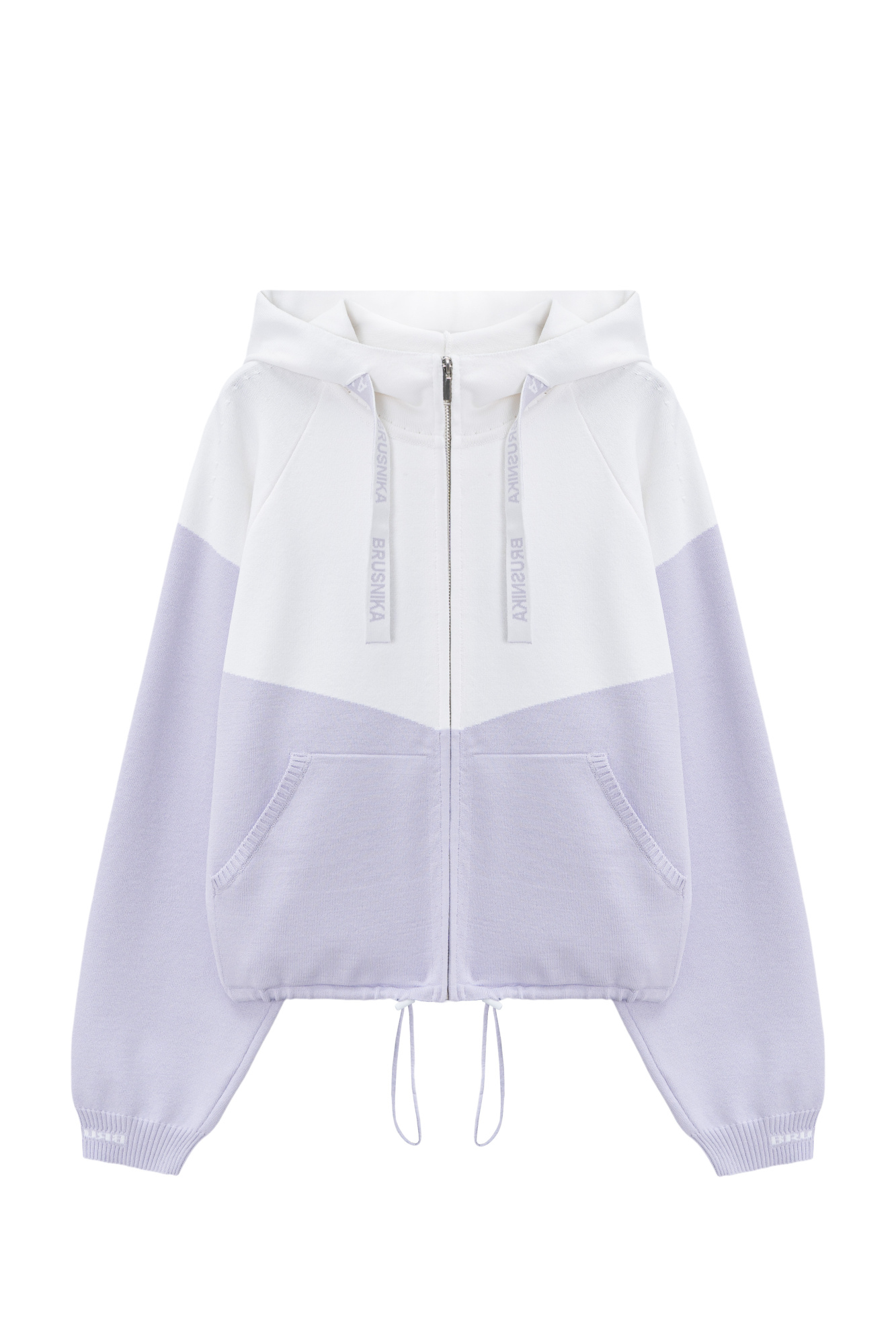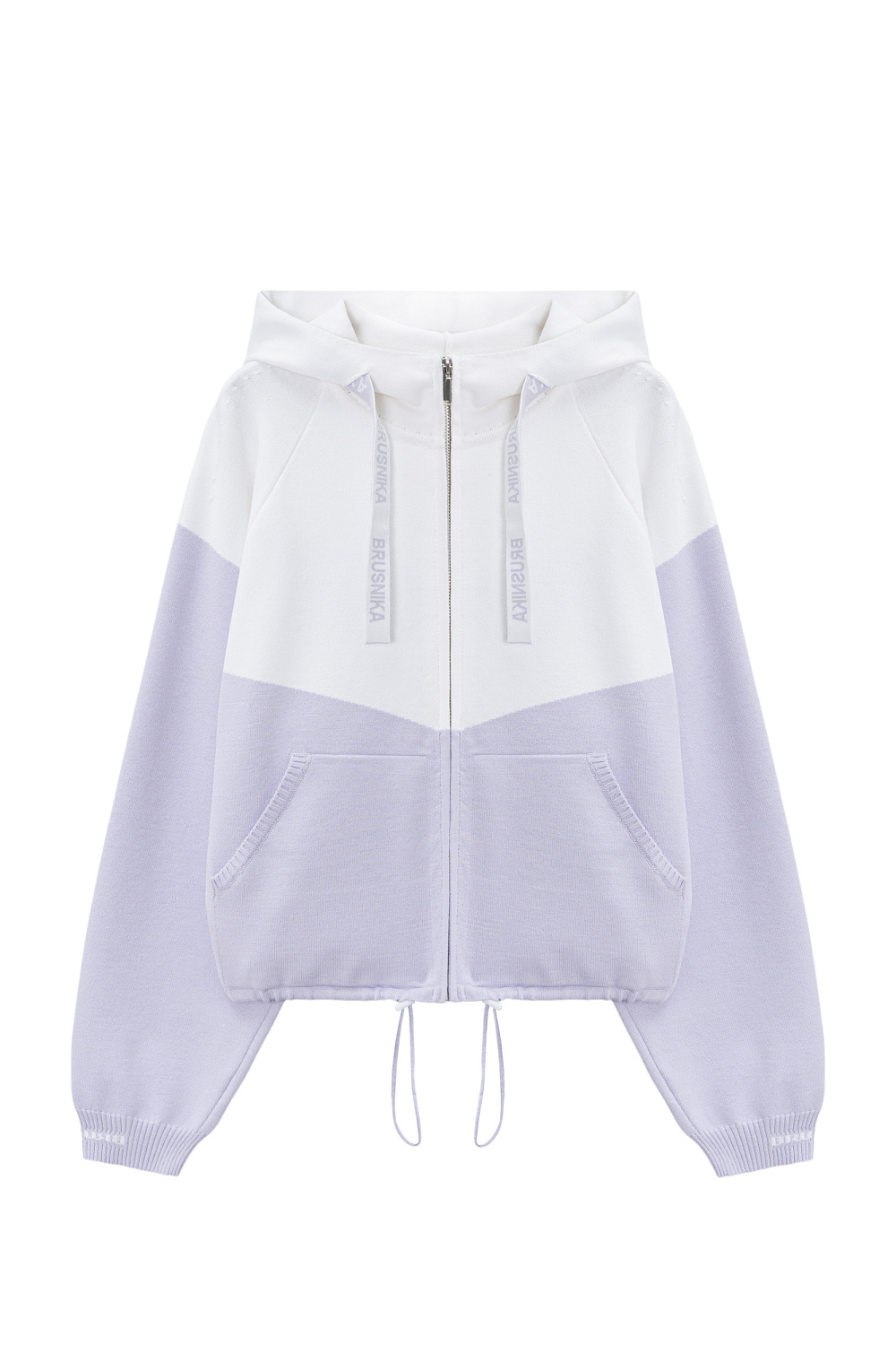 Knitted bomber jacket made of viscose with added elastane. The model is made in a sporty style, with a hood with a drawstring and pockets. The bottom of the product is adjustable with a drawstring. Elasticated cuffs. Zip closure.