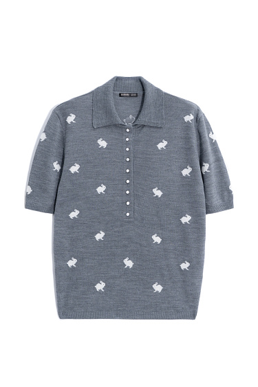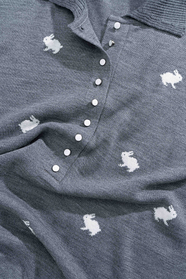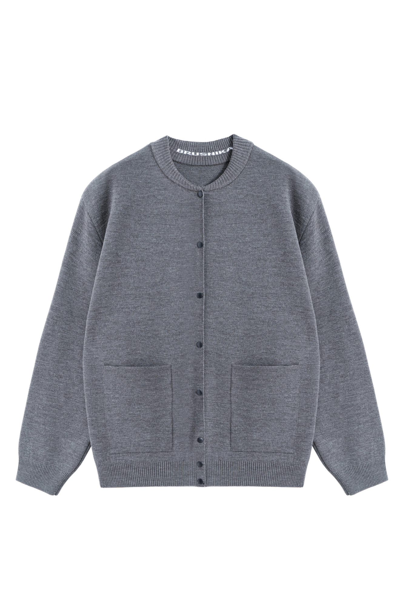 Knitted bomber jacket made from a merino wool blend. Relaxed silhouette with patch pockets and dropped shoulders. Button closure.