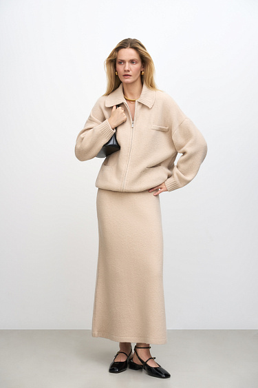 Knitted wool blend bomber jacket. Loose silhouette model with patch pockets and zip fastening.