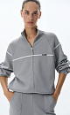 Bomber jacket made of viscose in a sporty style with stripes. Stand-up collar and ribbed hem.