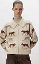 Bomber jacket with jacquard animal design. Loose silhouette model with zip fastening. The edges of the product are ribbed.