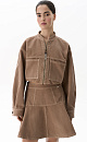 Corduroy bomber jacket with patch pockets. The model has a loose silhouette with dropped shoulders and a branded label on the back. Buttoned cuffs. Zip closure.