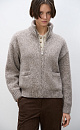 Knitted melange bomber jacket made of extrafine merino wool. The model has a loose silhouette with dropped shoulders, a turn-down collar and two patch pockets. The sleeve cuffs, hem and collar of the product are ribbed.