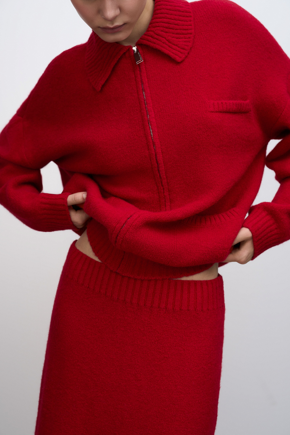 Knitted wool blend bomber jacket. Loose silhouette model with patch pockets and zip fastening.