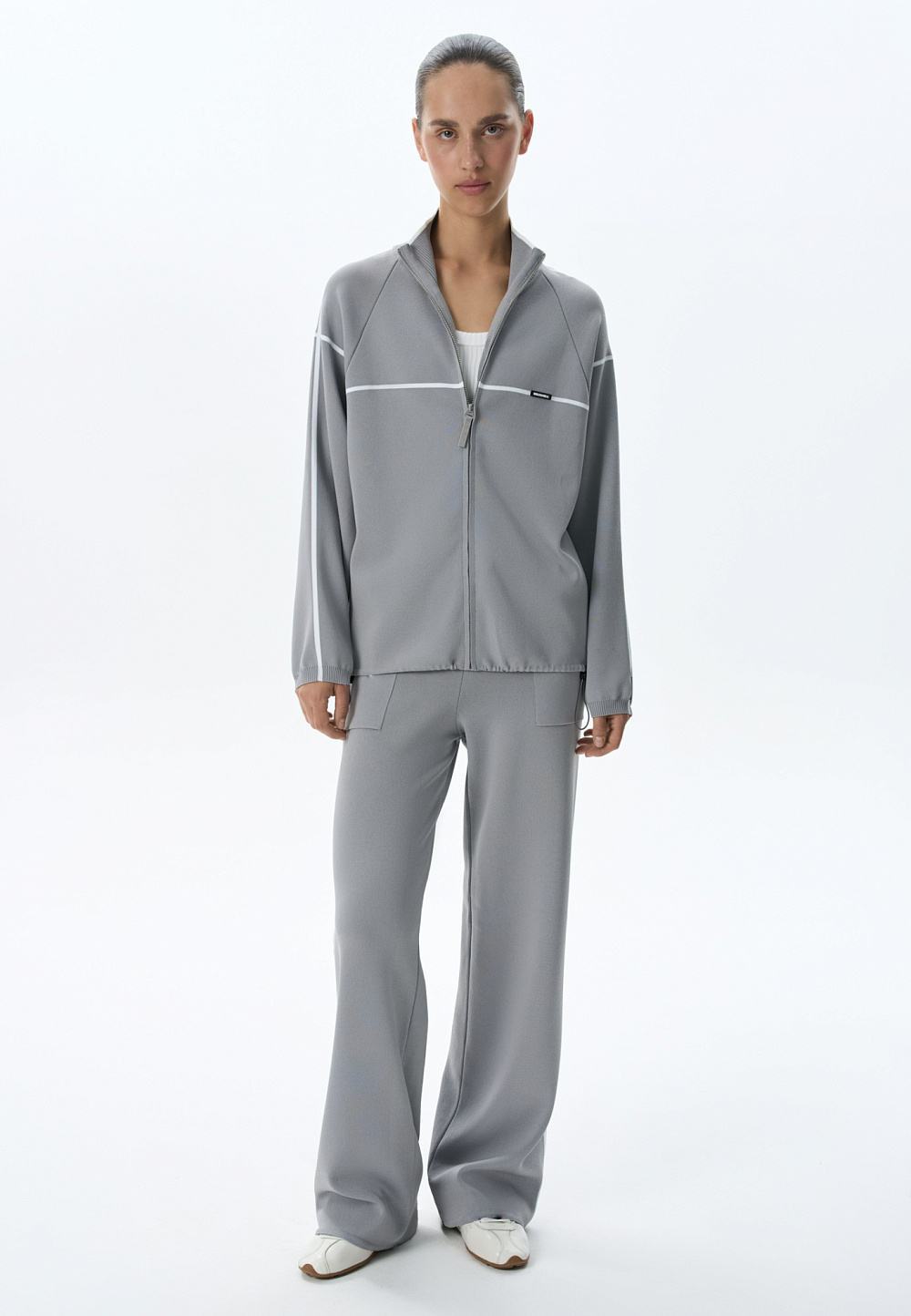 Bomber jacket made of viscose in a sporty style with stripes. Stand-up collar and ribbed hem.