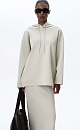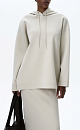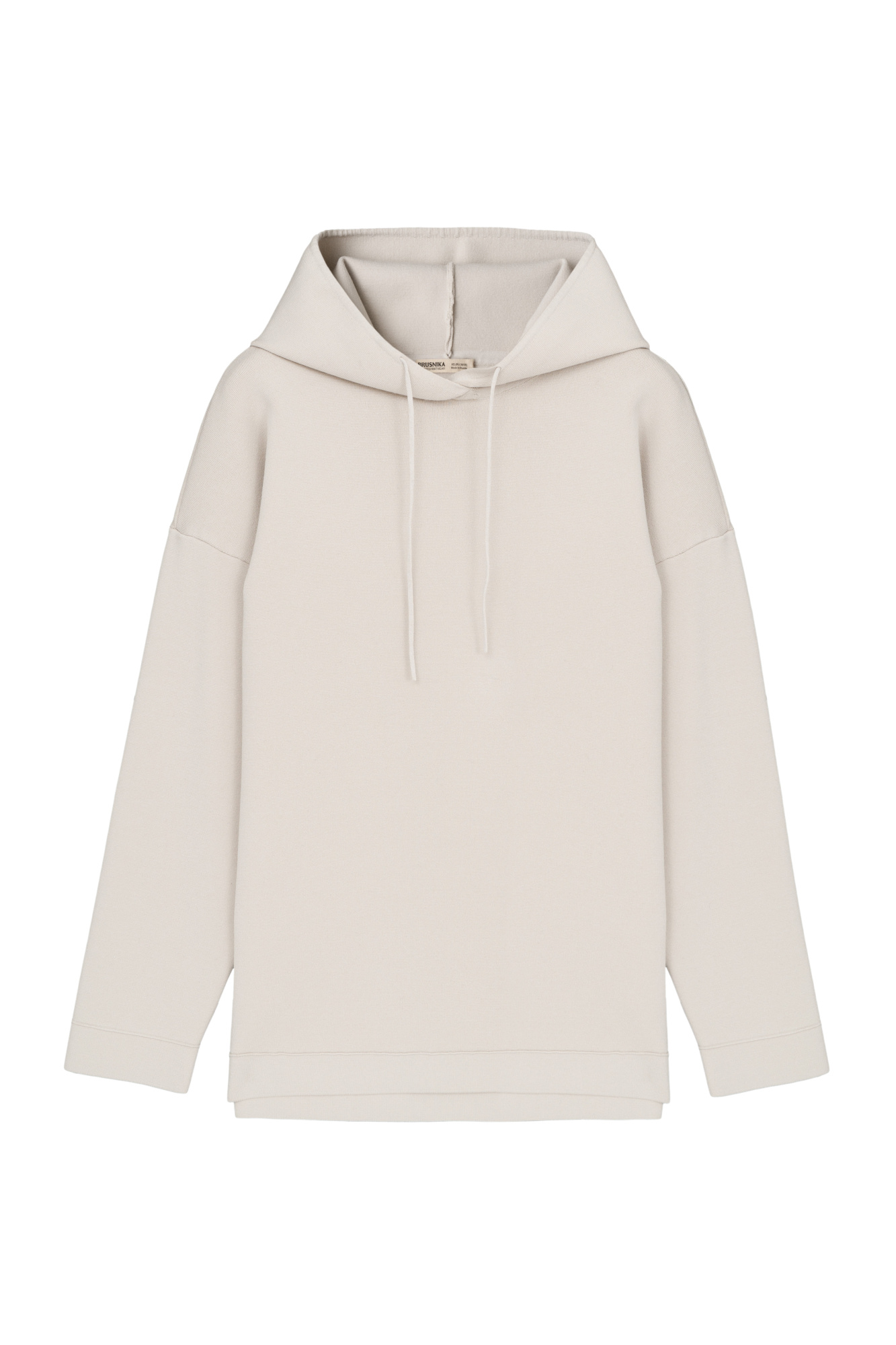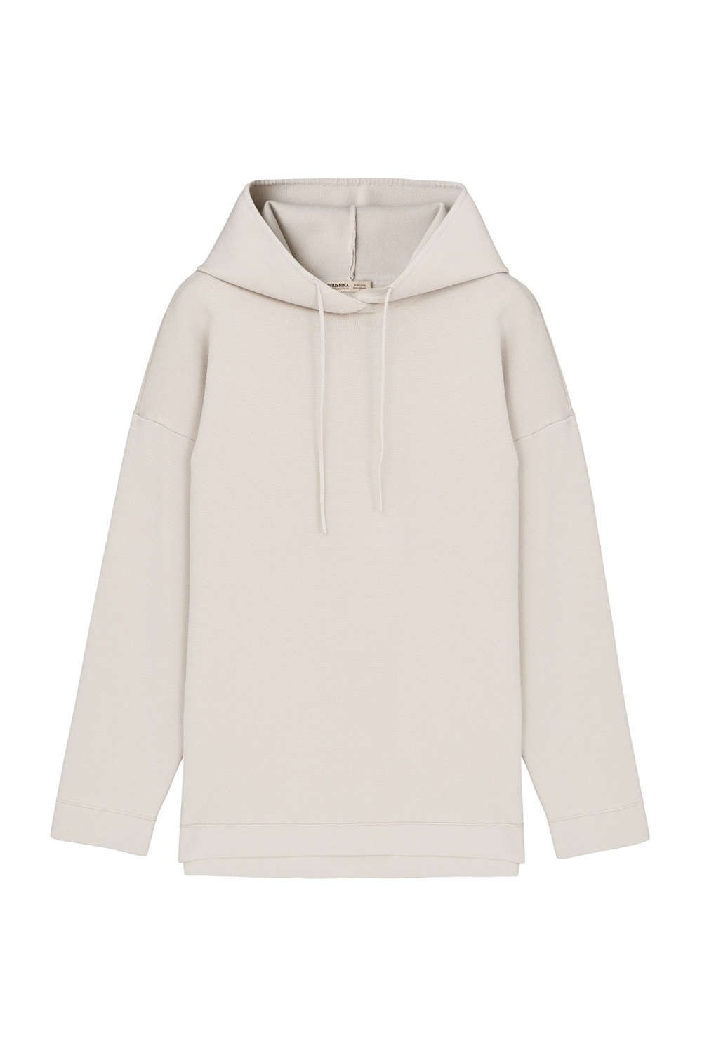 Knit viscose jumper with a drawstring hood and dropped shoulders.