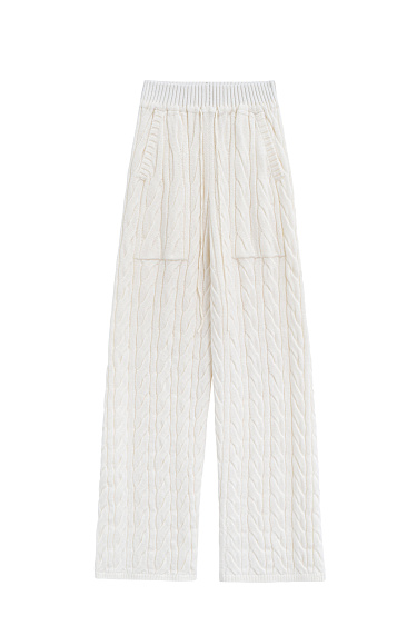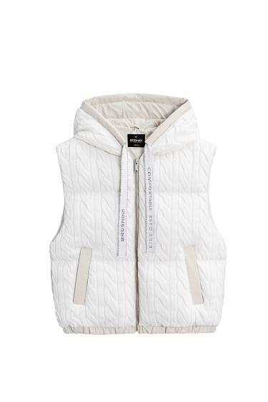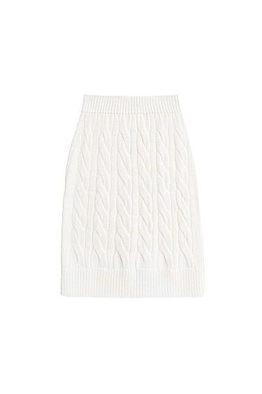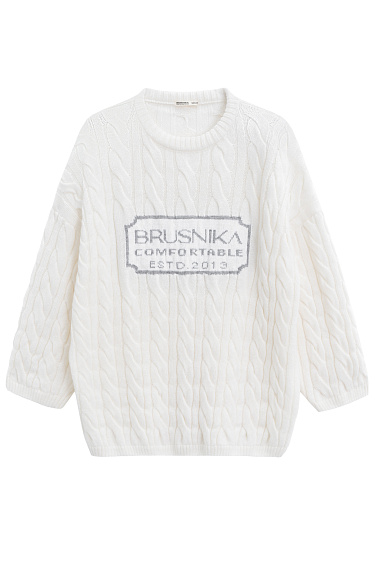 Knitted hoodie with voluminous braids made of soft wool. The model has a loose silhouette, with dropped shoulders, patch pockets and a hood. The product is decorated with branded jacquard on the back. Zip closure. Made without lining. You can complement the look with trousers or a skirt in the same style.