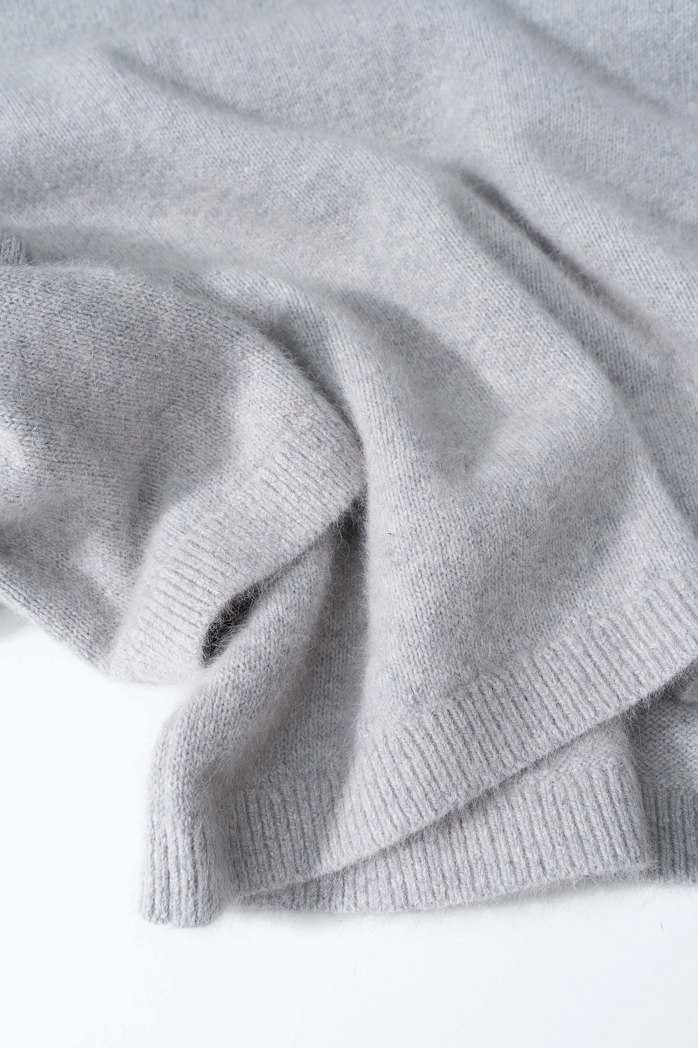 Knitted fox fur hoodie. Loose silhouette model with a hood and dropped shoulders.
