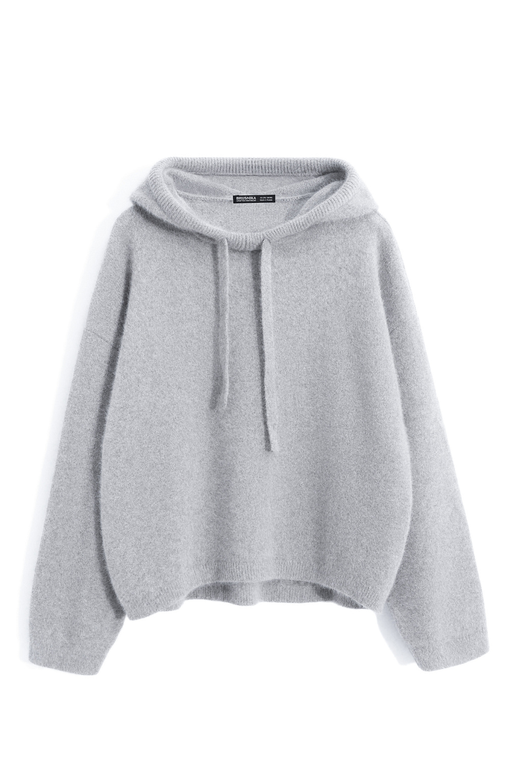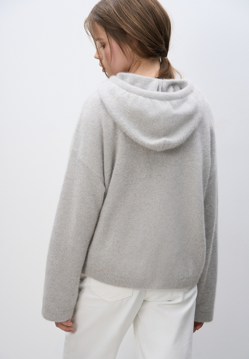 Knitted fox fur hoodie. Loose silhouette model with a hood and dropped shoulders.