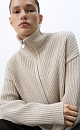 Knitted cardigan with a high stand-up collar, long sleeves and zip closure. For production, fine wool was used with the addition of delicate cashmere.