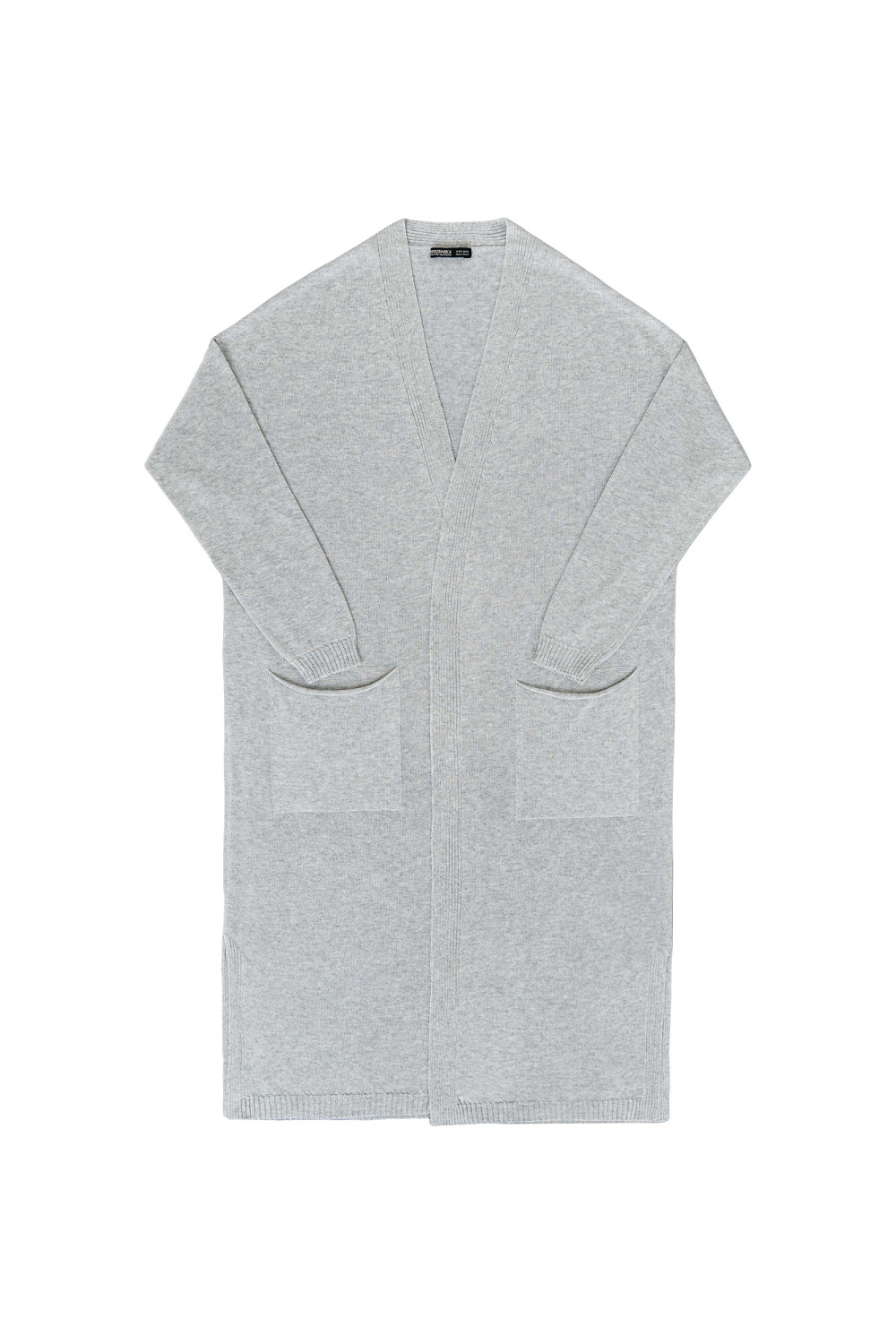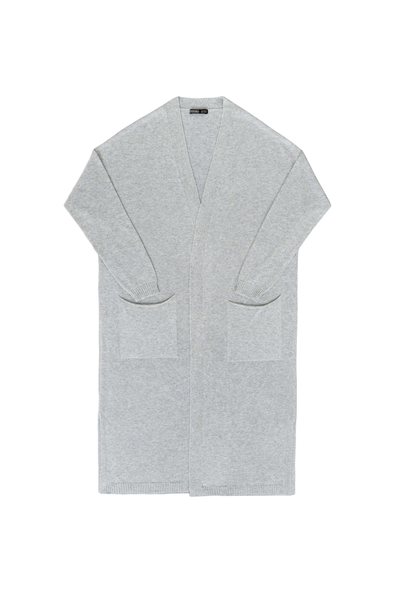 Lightweight long viscose cardigan with long sleeves, patch pockets and tie belt.