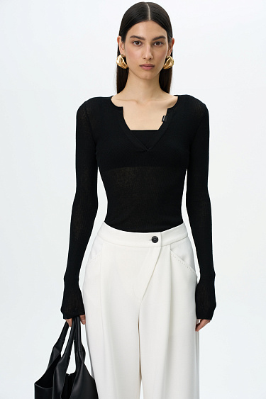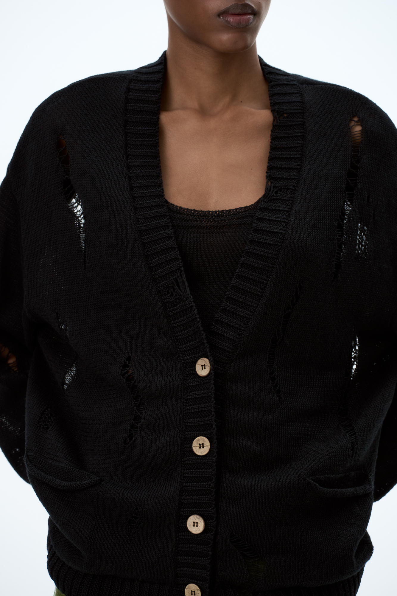 Linen cardigan with a ripped pattern. You can complete the look with a top.