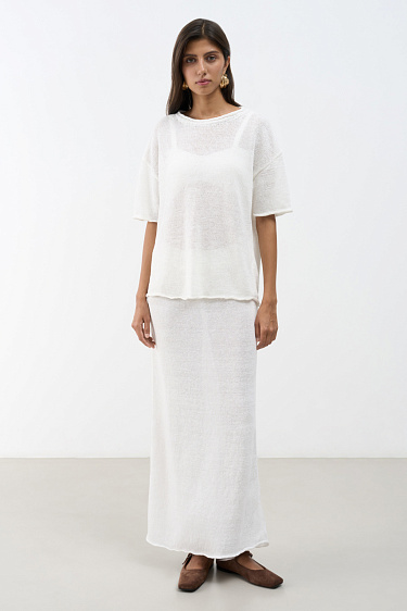 Linen cardigan with a ripped pattern. You can complete the look with a top.