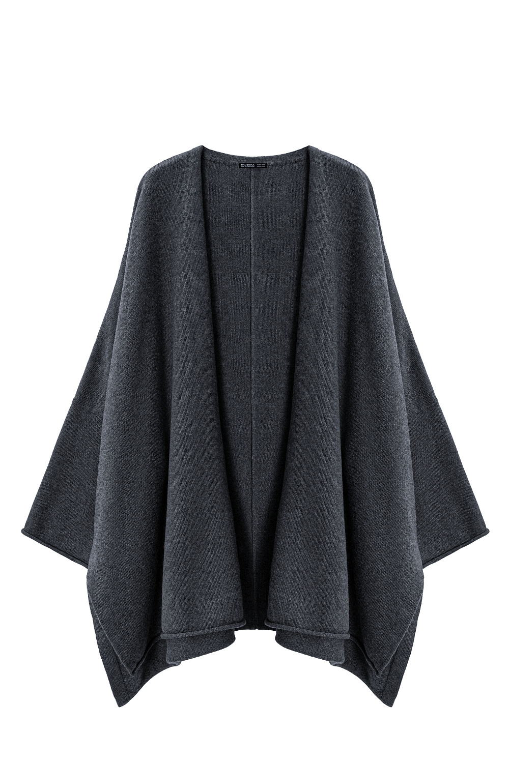 Knitted cardigan made of wool and cashmere. The model has a loose fit, with long wide sleeves and dropped shoulders. No clasp.