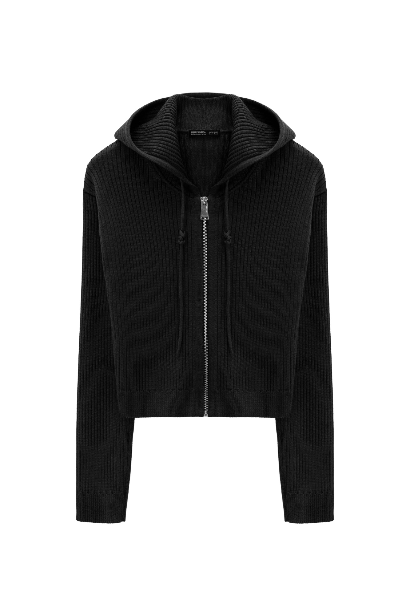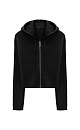 Knitted cardigan in a viscose and wool blend. Features hood with drawstring and front zip closure.