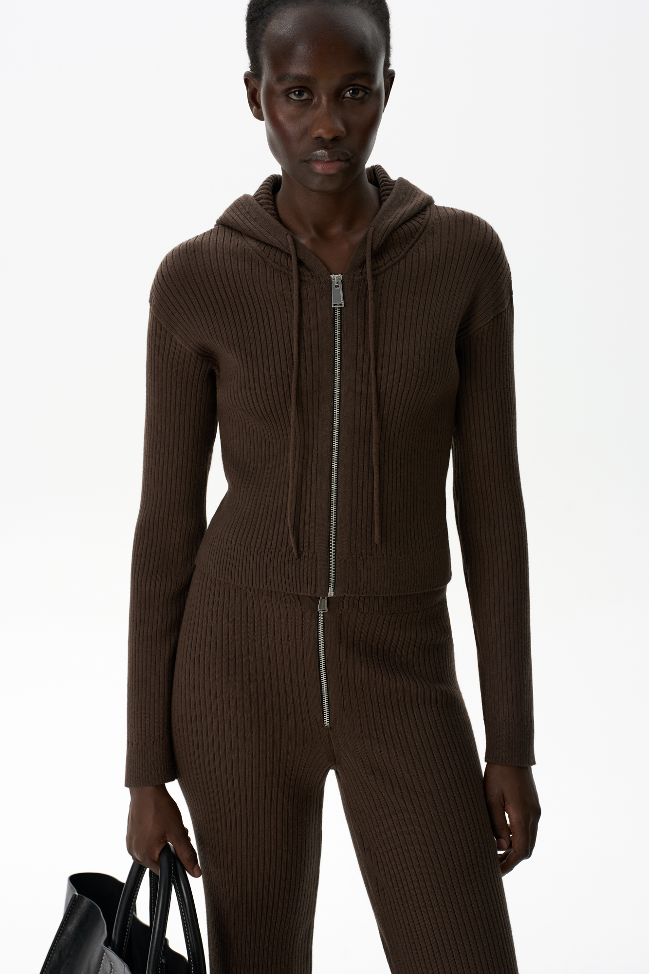 Rib knit cardigan with zipper