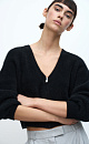 Zip-up cropped bomber jacket with V-neck. The yarn contains 40% natural fox down making the bomber jacket warm, soft and lightweight.