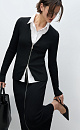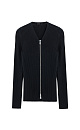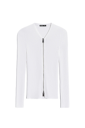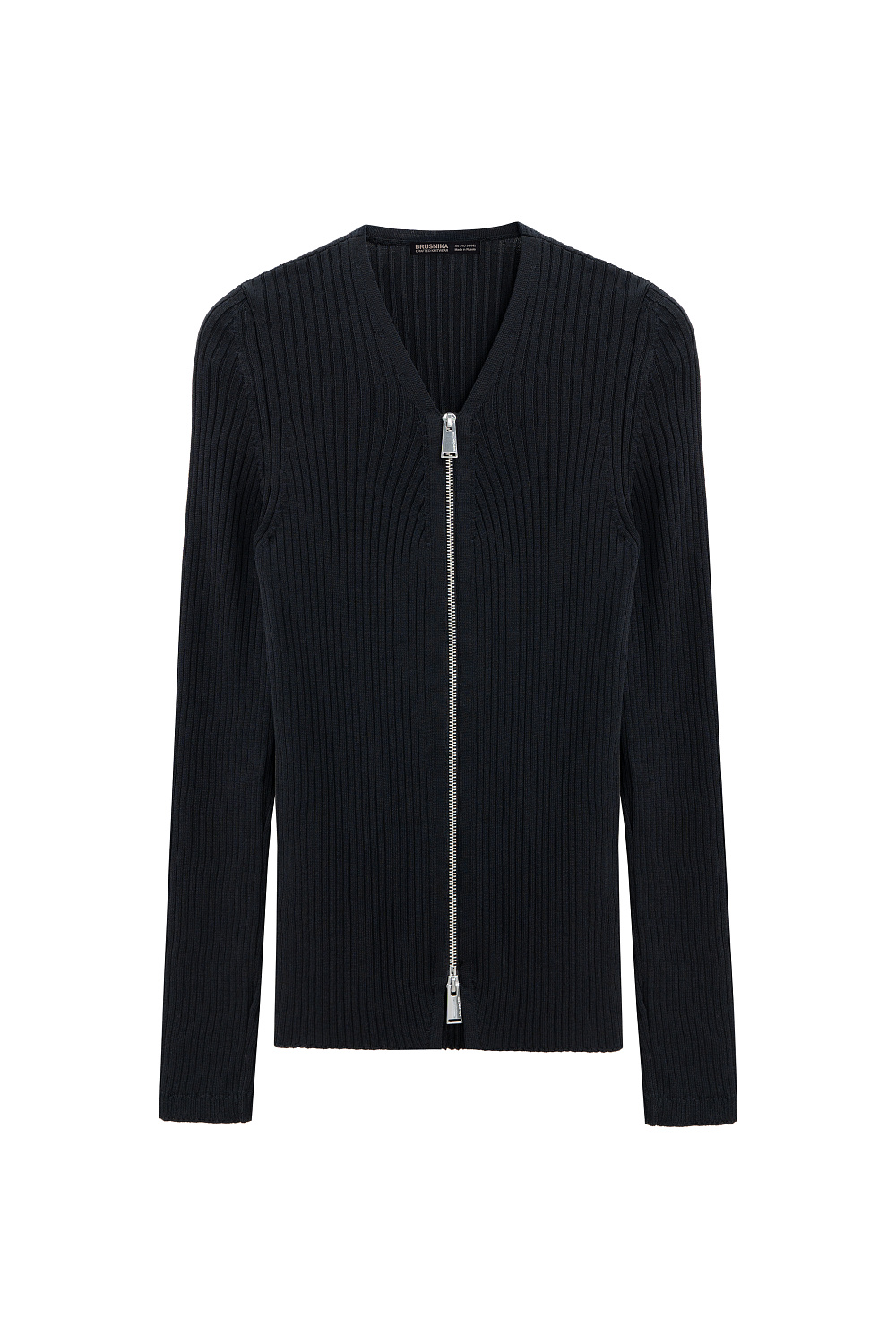 Knitted cardigan with zipper made of viscose. The model has a straight silhouette, long sleeves and a V-neck. The product is made with a wide rib.