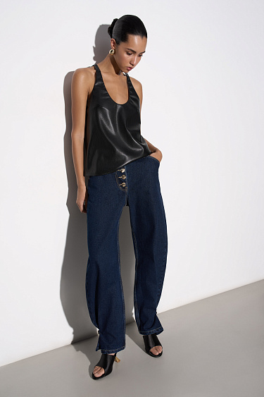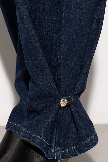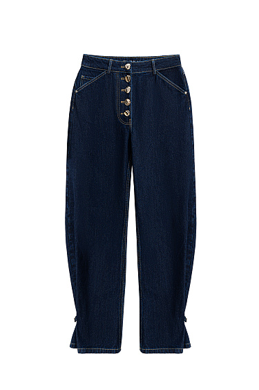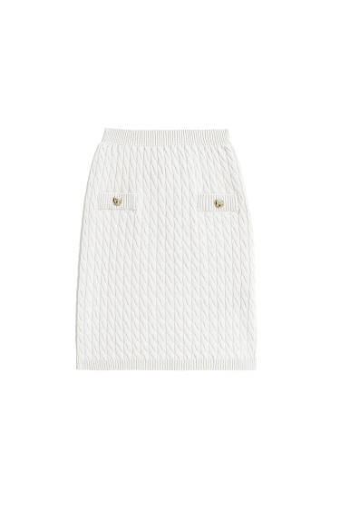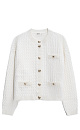 Cardigan made of 100% extrafine merino wool, made with knitted braids. Loose fit model with long sleeves, dropped shoulders and a round neckline. Imitation pockets with flaps. The product is decorated with large accent buttons.