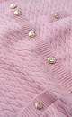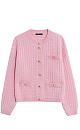 Cardigan made of 100% extrafine merino wool, made with knitted braids. Loose fit model with long sleeves, dropped shoulders and a round neckline. Imitation pockets with flaps. The product is decorated with large accent buttons.