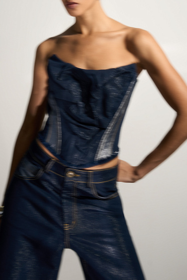 Knitted cardigan with lurex. The model has a loose fit, with long wide sleeves and dropped shoulders. No clasp.