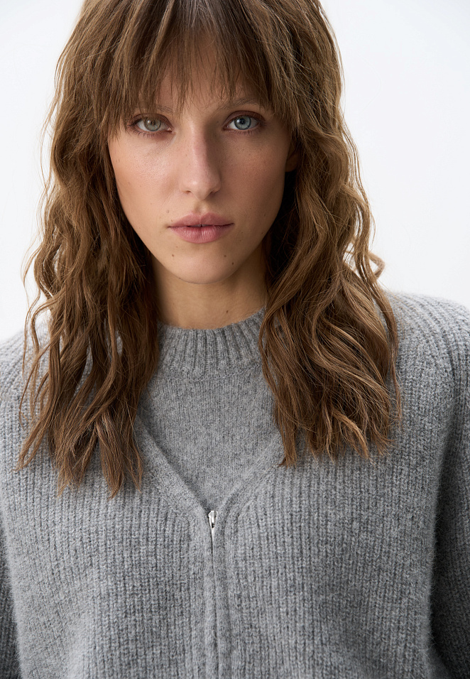 Rib knit cardigan with zipper