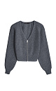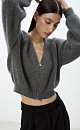 Zip-up cropped bomber jacket with V-neck. The yarn contains 40% natural fox down making the bomber jacket warm, soft and lightweight.