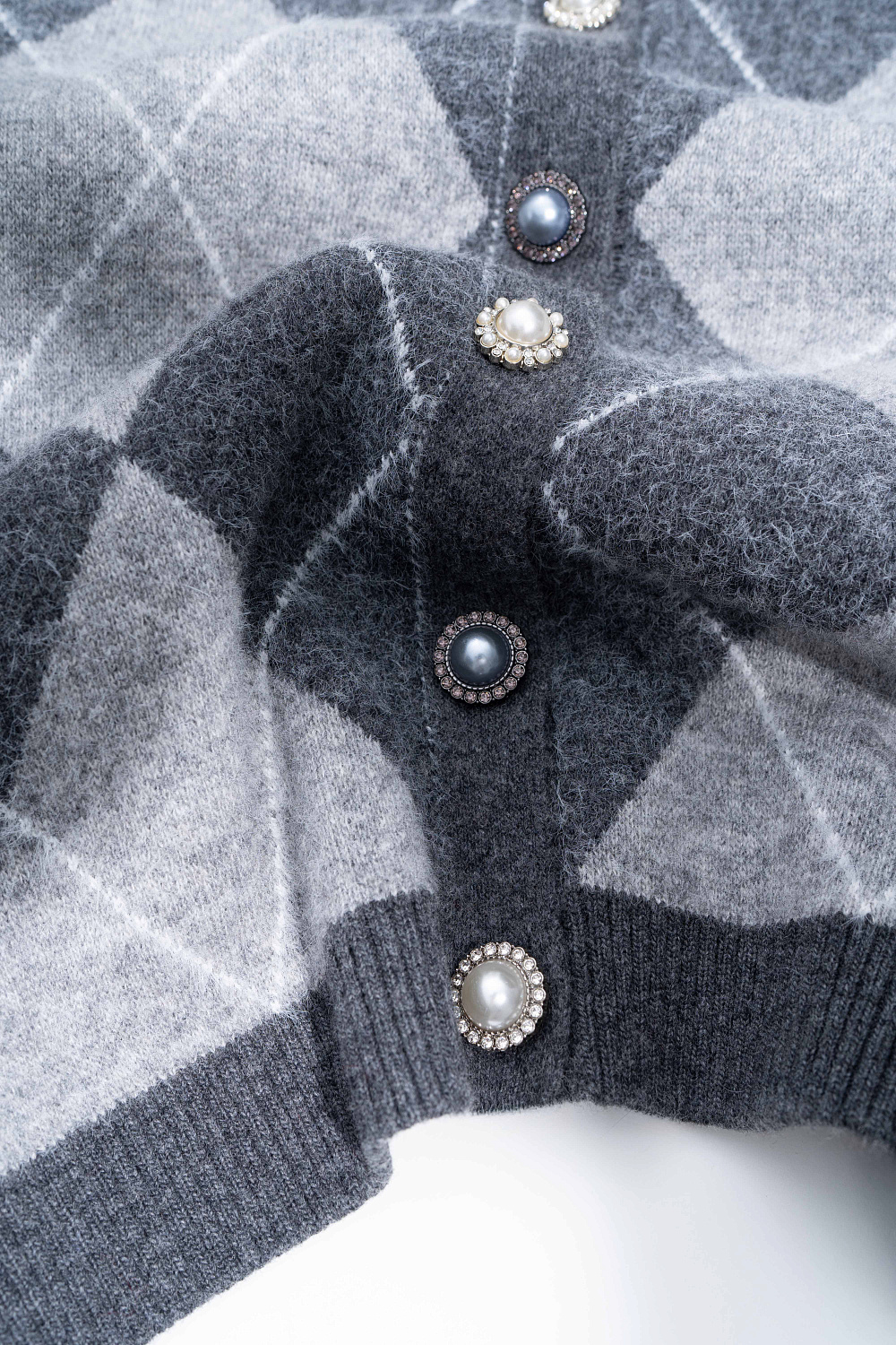 Cashmere cardigan with an Argyle pattern