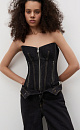 Denim corset made of 100% cotton. Fitted silhouette with accent stitching and front zip fastening. Lace-up back.