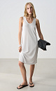 Viscose knitted dress. The model has a loose silhouette, sleeveless, wide straps, a U-neck and a deep armhole. Drawstrings on the sides of the product allow you to adjust the length and create drape.