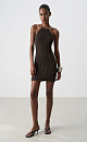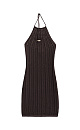 Knitted openwork cotton dress. The model has a fitted silhouette, sleeveless, with an open back and a halter neckline with thin ties with beads.