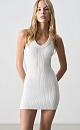 Mini-length dress made of textured viscose jersey. The model has a fitted silhouette, sleeveless, wide straps, and a U-shaped neckline. The product is made with a wide rib.