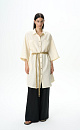 Shirt dress made of 100% linen. The model has a straight cut, with a turn-down collar, patch pockets on the chest and dropped shoulders. Button closure.