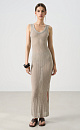 Knitted openwork sundress made of viscose. The model has a loose silhouette, sleeveless, thin straps and an open back. The knitting is made in a herringbone pattern, the edges of the product are ribbed.