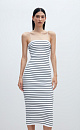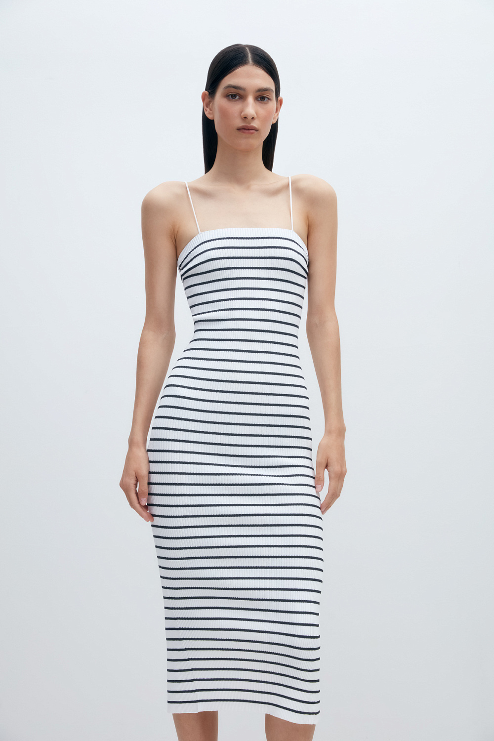 Rib-knit bodycon dress with thin straps and a slit at the back.