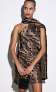 Satin mini dress with polka dot print. Fitted with a halter neckline, button fastening at the neck, an open back and thin, adjustable straps. The product is decorated with a long scarf.