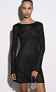 Knitted mini-length cotton dress with sequins. Model of a fitted silhouette with long sleeves and an open back. The sleeve cuffs and hem are decorated with bolsters.
