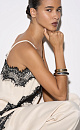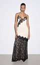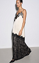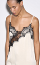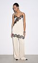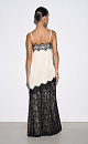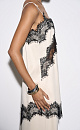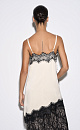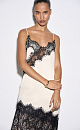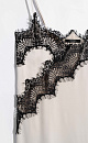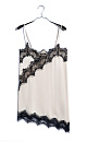 Mini length slip dress made of 100% viscose. Model with thin straps. The hem and bodice of the product are decorated with thin lace in a contrasting color.