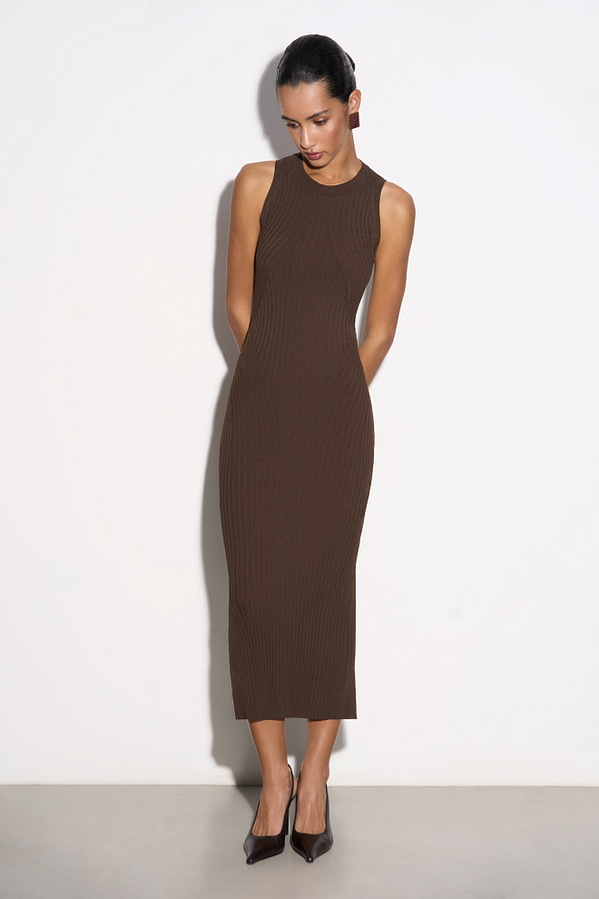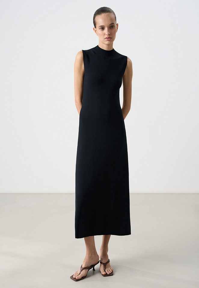 Knitted dress with a stand-up collar