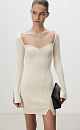 Knitted viscose dress, mini length. Model of a fitted silhouette with long sleeves and a figured neckline.