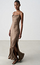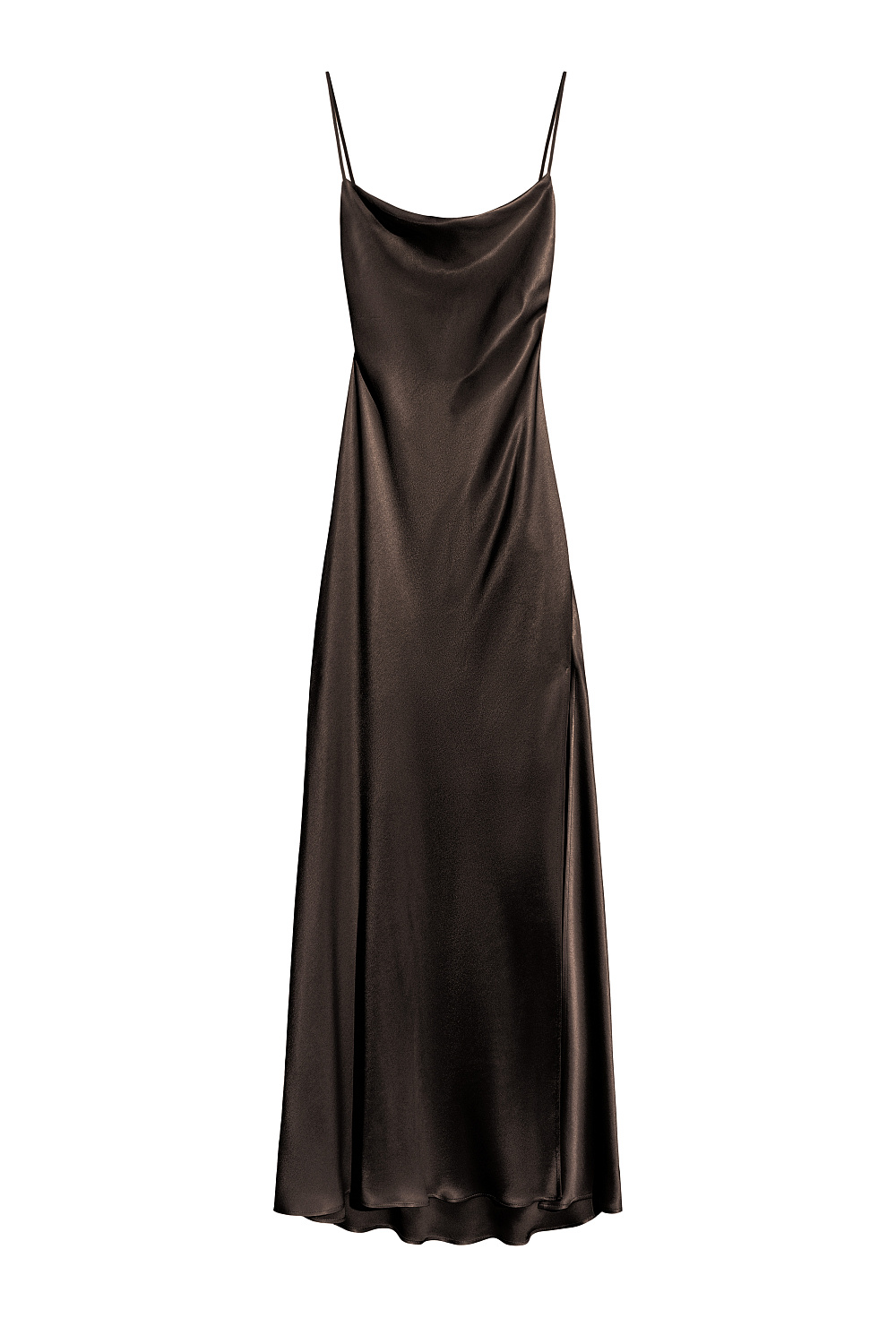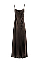Midi slip style dress made of satin material based on 100% viscose. Thin adjustable straps. Open back.