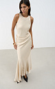 Satin midi dress with asymmetrical hem and gathered waist. Invisible zip fastening.